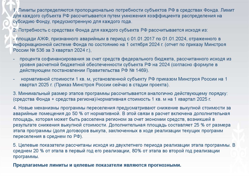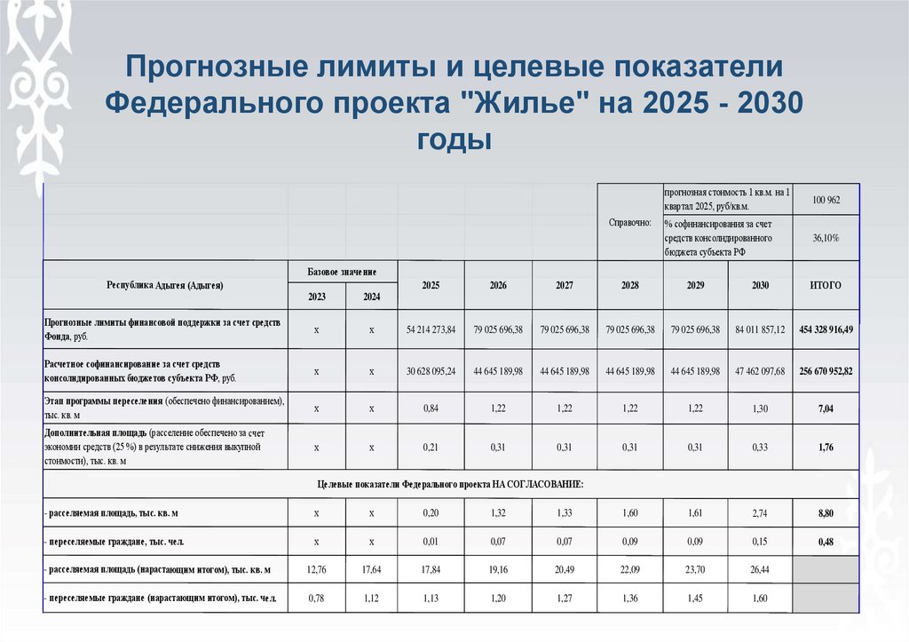 Прогнозные лимиты и целевые показателиФедерального проекта "Жилье" на 2025 - 2030