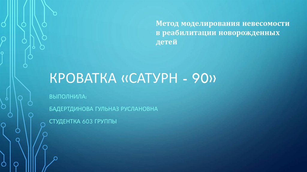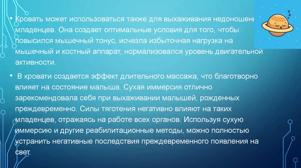Метод моделирования невесомости в реабилитации новорожденных детей. Кроватка «Сатурн - 90»