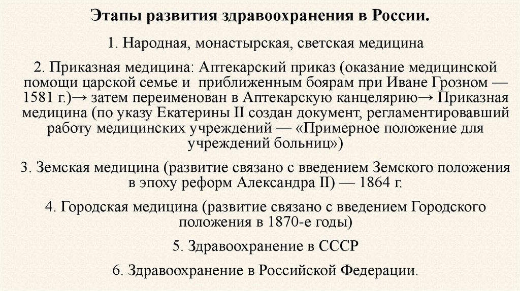 Этапы развития здравоохранения в России.1. Народная, монастырская, светская медицина