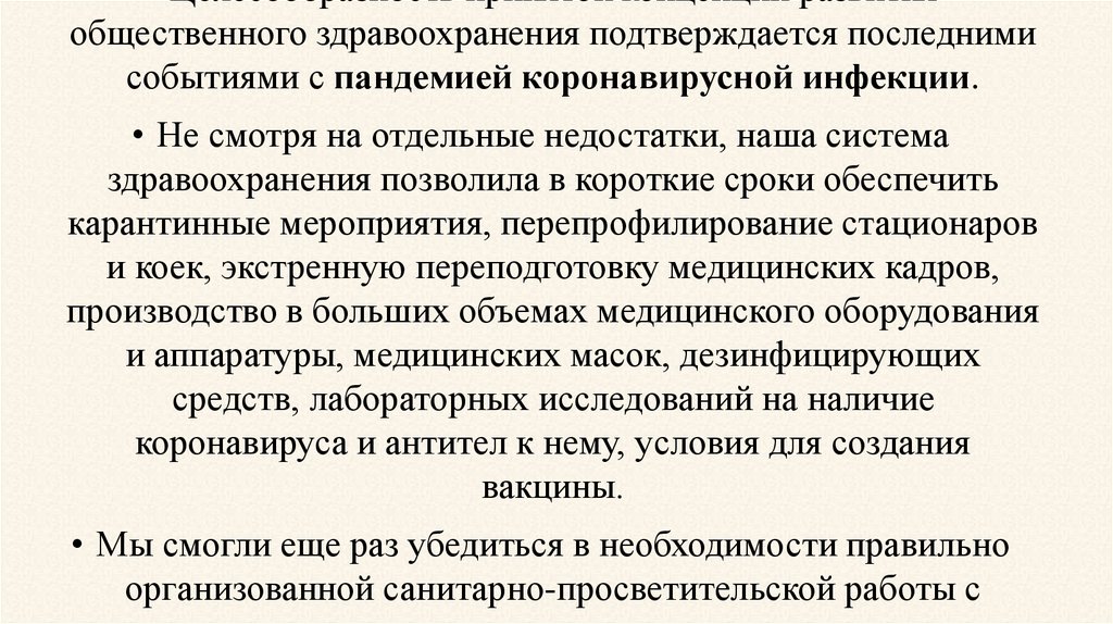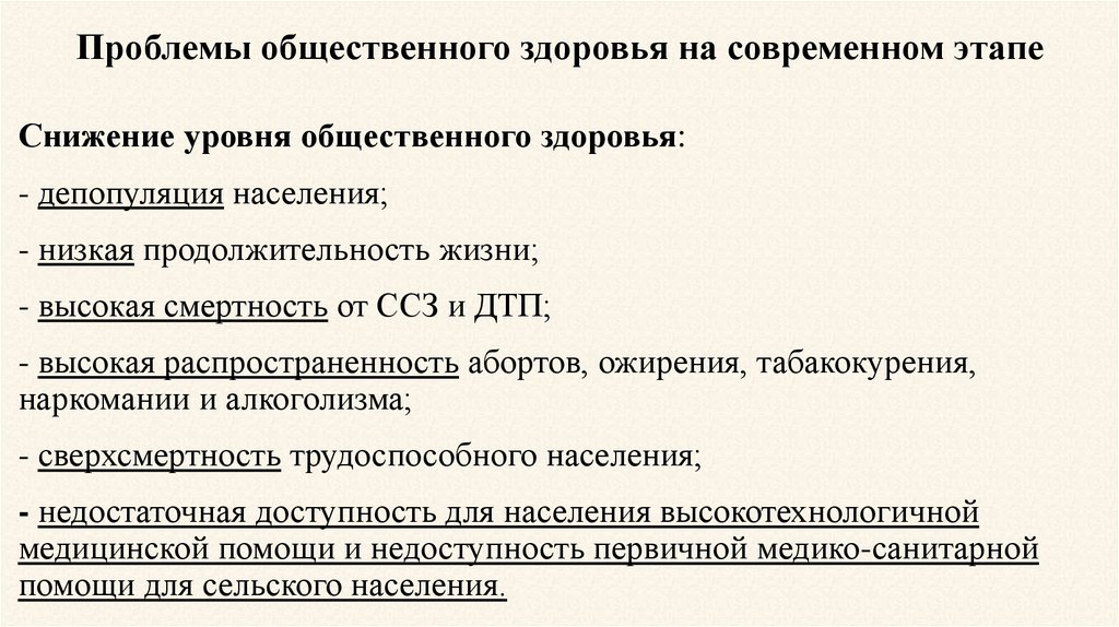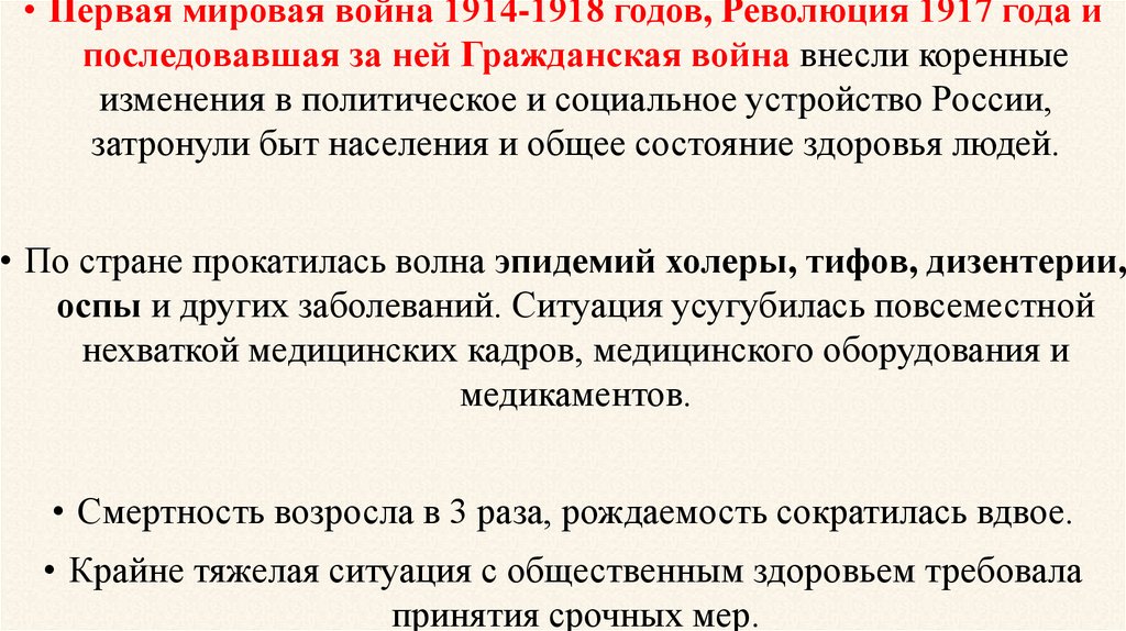 • Крайне тяжелая ситуация с общественным здоровьем требовала