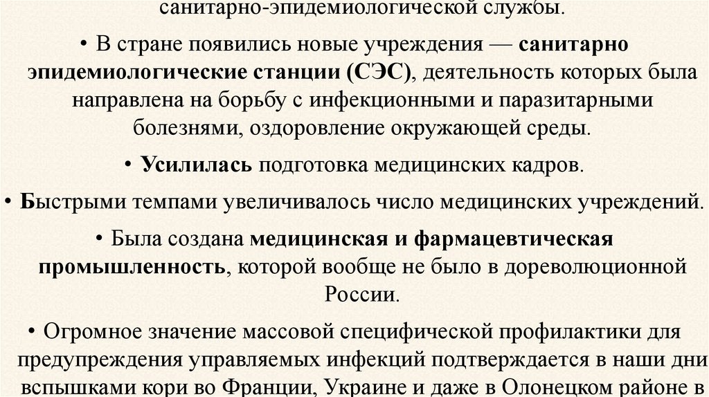 санитарно-эпидемиологической службы.• В стране появились новые учреждения — санитарно