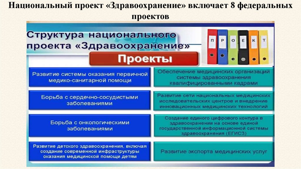 Национальный проект «Здравоохранение» включает 8 федеральныхпроектов
