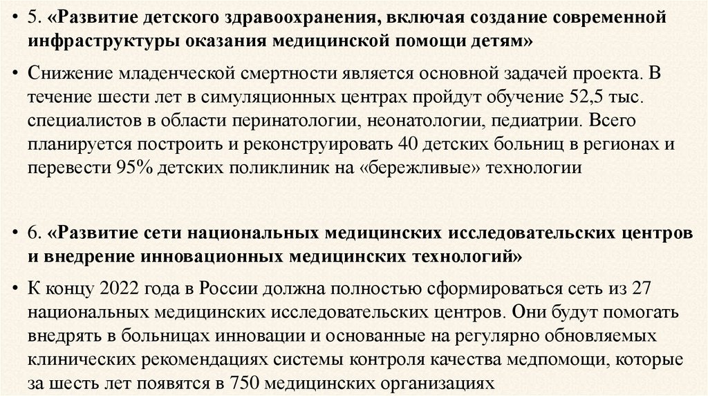 • 5. «Развитие детского здравоохранения, включая создание современнойинфраструктуры оказания медицинской помощи детям»