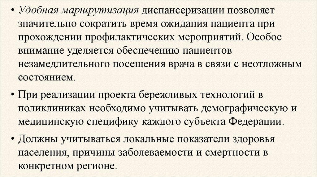 • Удобная маршрутизация диспансеризации позволяетзначительно сократить время ожидания пациента при