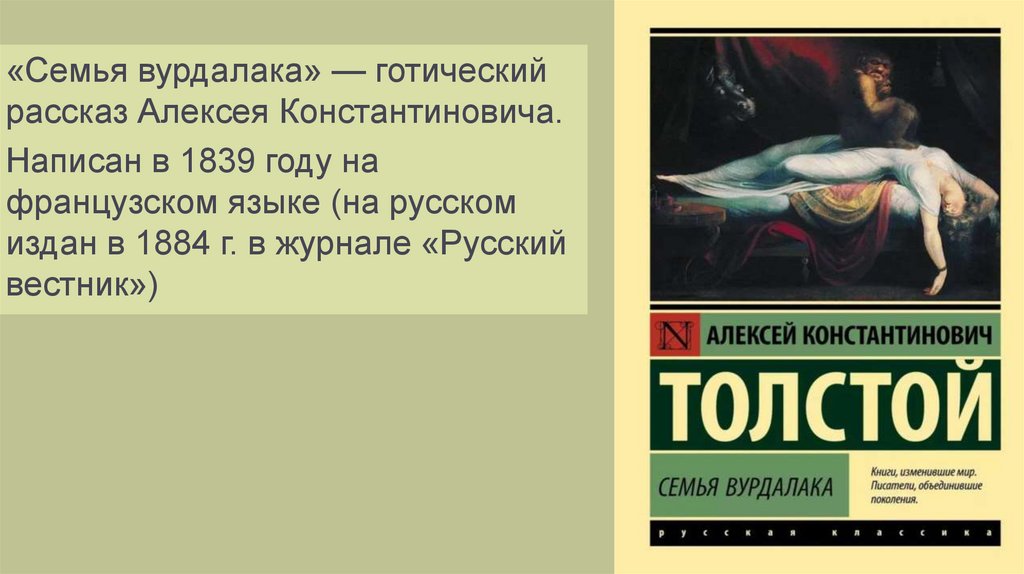 «Семья вурдалака» — готическийрассказ Алексея Константиновича.