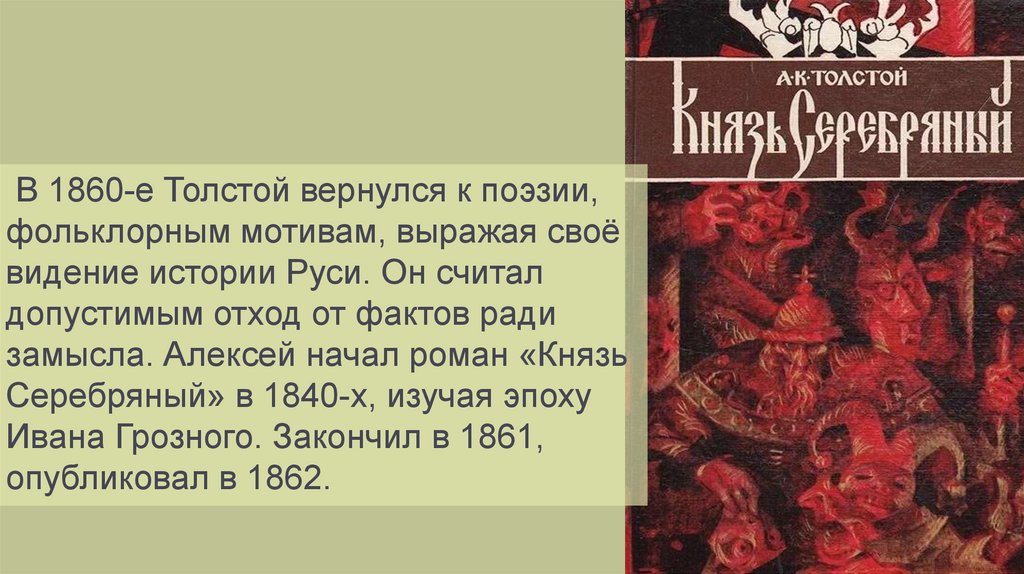 В 1860-е Толстой вернулся к поэзии,фольклорным мотивам, выражая своё