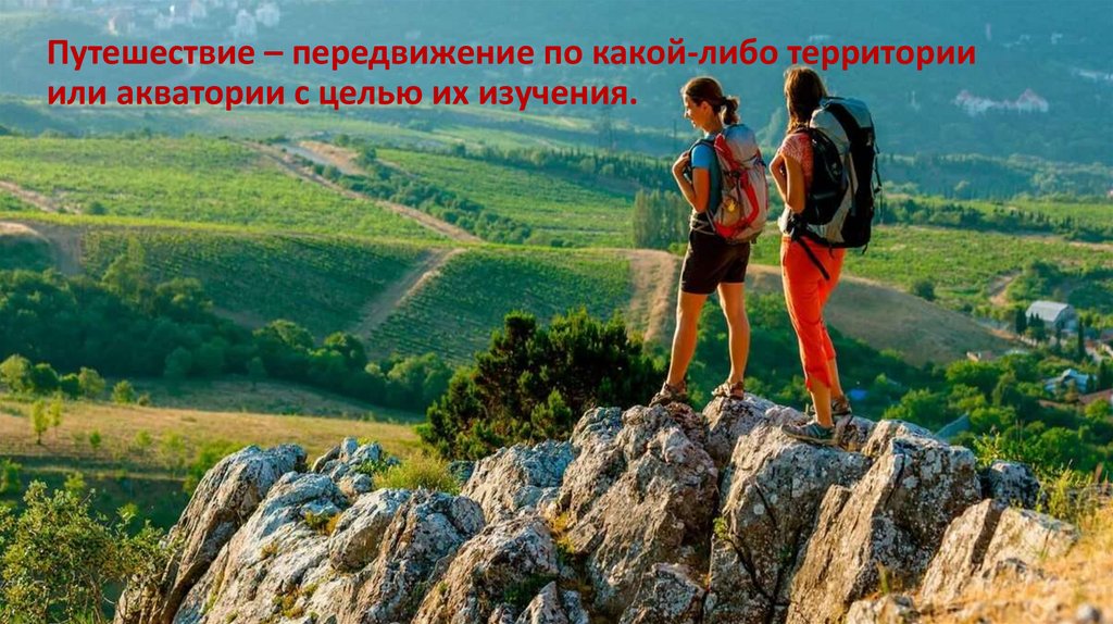 Путешествие – передвижение по какой-либо территорииили акватории с целью их изучения.