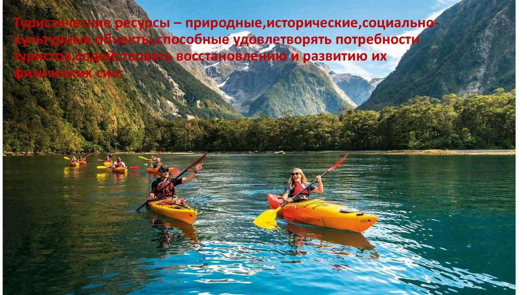 Туристические ресурсы – природные,исторические,социальнокультурные объекты,способные удовлетворять потребноституристов,содействовать восстановлению и развитию их