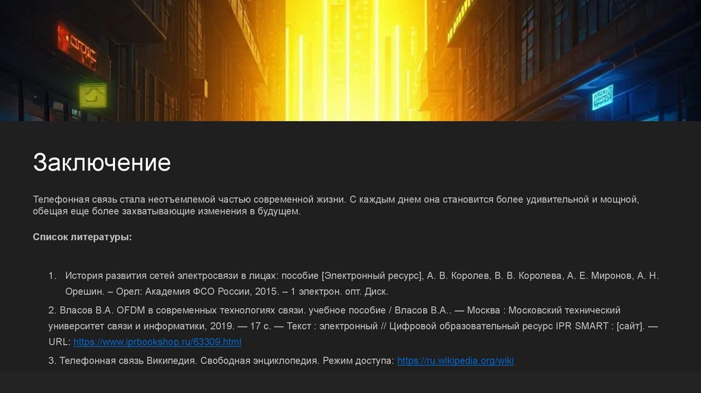 ЗаключениеТелефонная связь стала неотъемлемой частью современной жизни. С каждым днем она становится более удивительной и мощной,