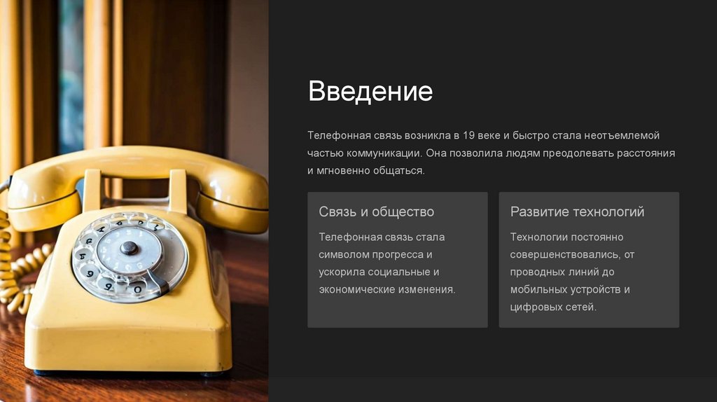 ВведениеТелефонная связь возникла в 19 веке и быстро стала неотъемлемой