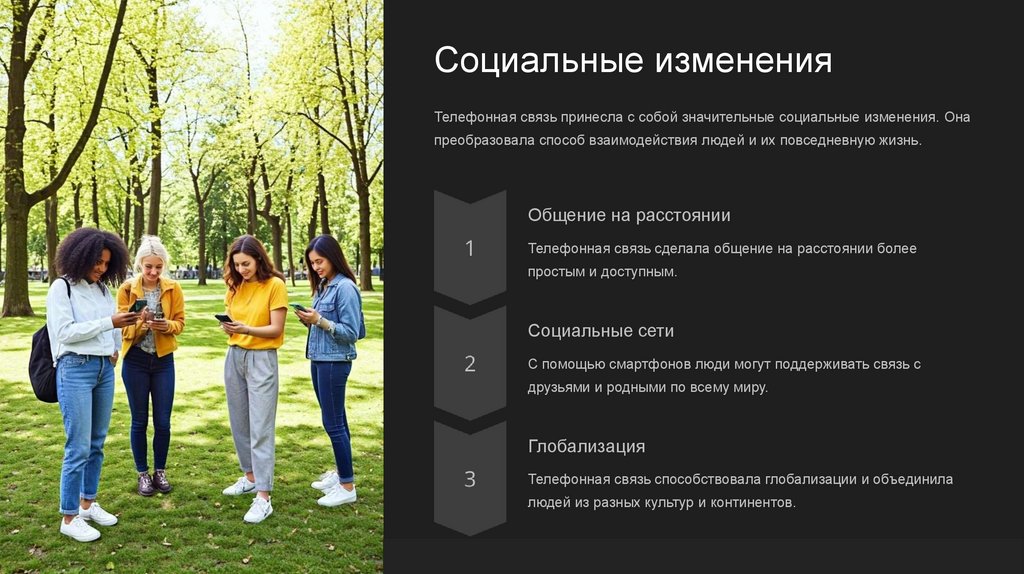 Социальные измененияТелефонная связь принесла с собой значительные социальные изменения. Она