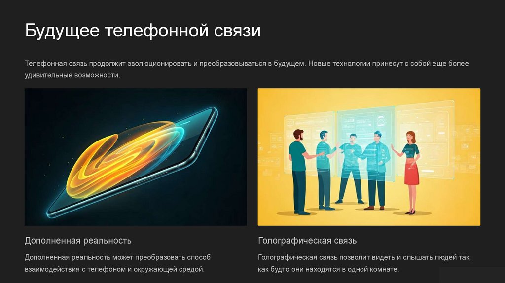 Будущее телефонной связиТелефонная связь продолжит эволюционировать и преобразовываться в будущем. Новые технологии принесут с собой еще более