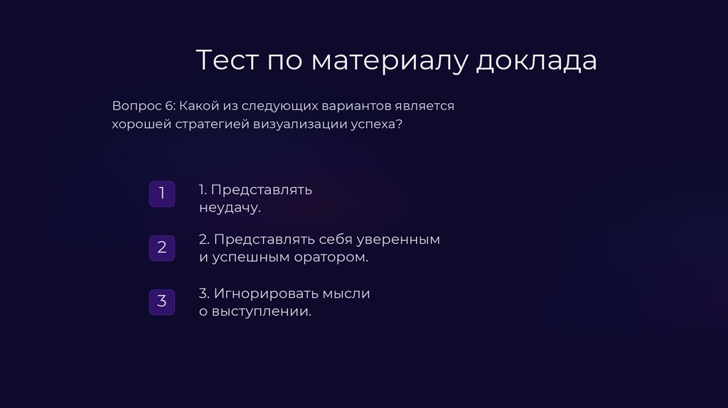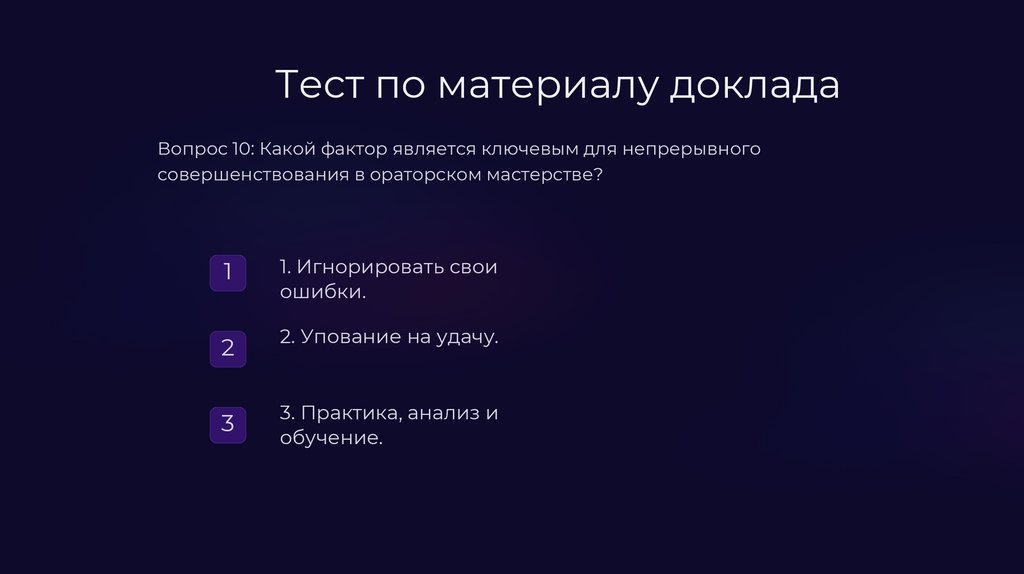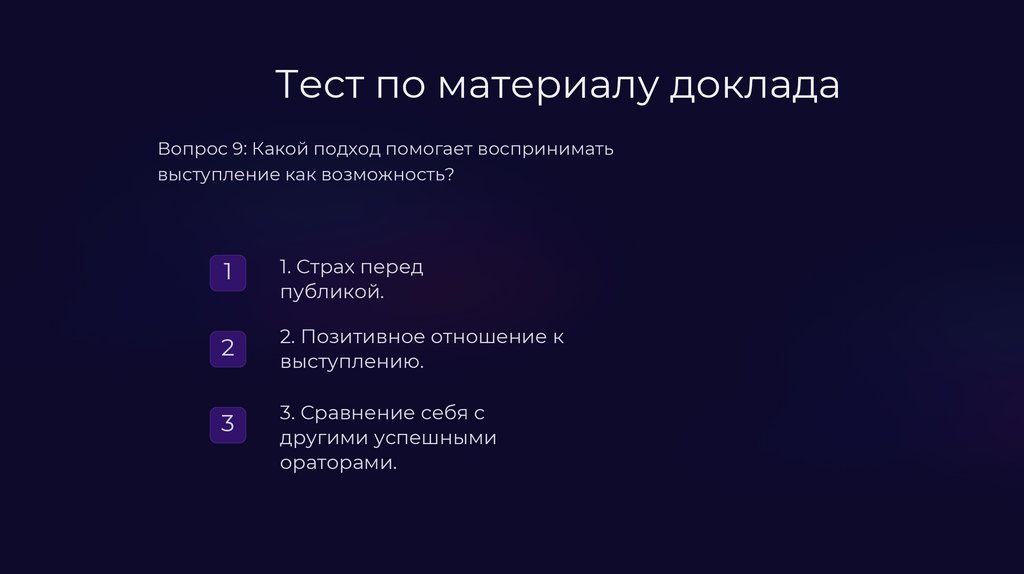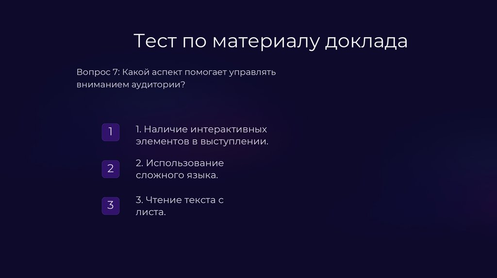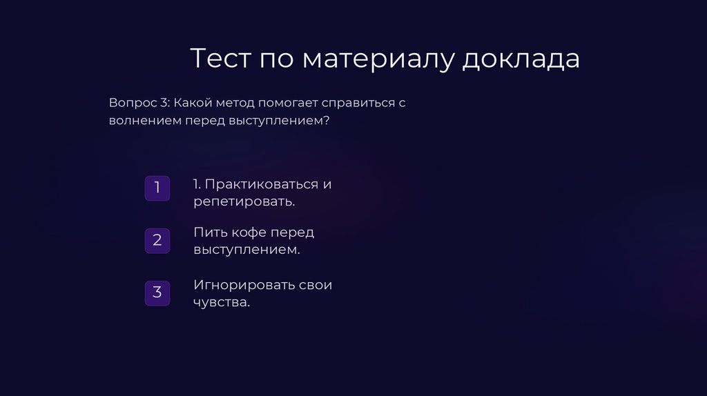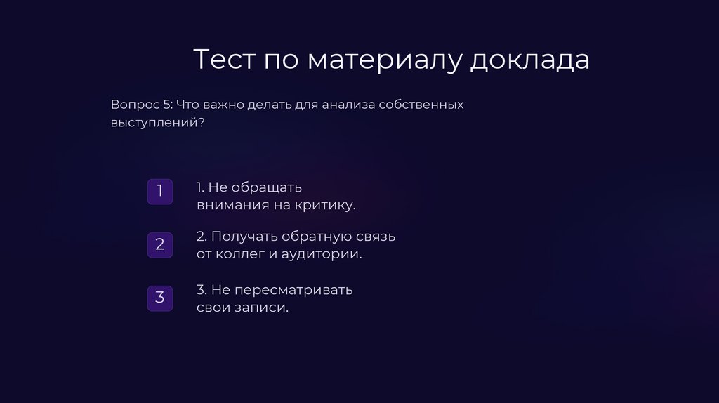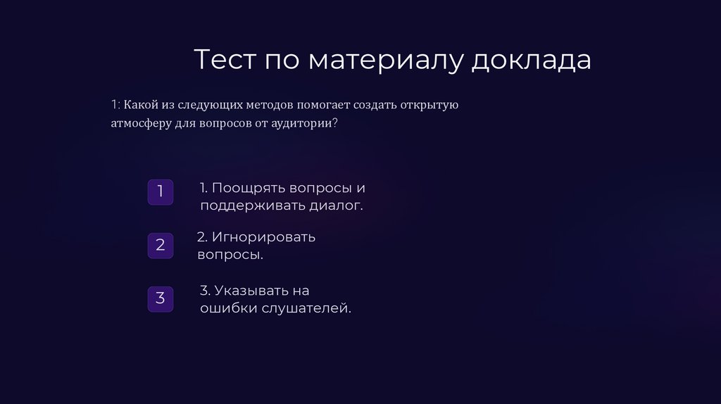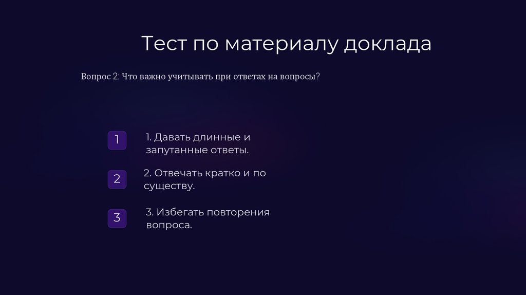 Тест по материалу докладаВопрос 2: Что важно учитывать при ответах на вопросы?
