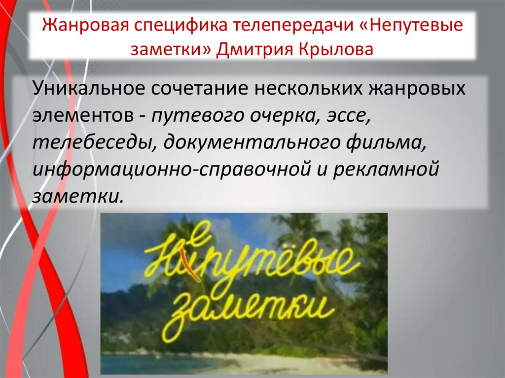 Жанровая специфика телепередачи «Непутевыезаметки» Дмитрия Крылова