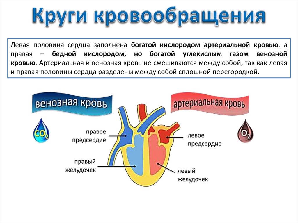 кровью. Артериальная и венозная кровь не смешиваются между собой, так как левая