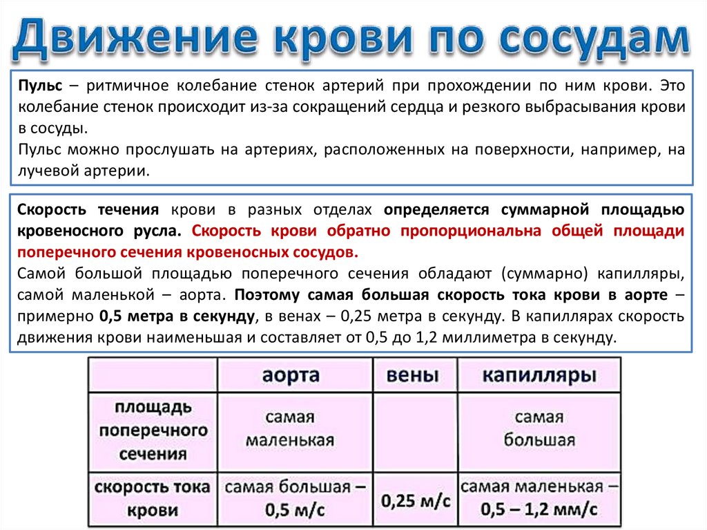 движения крови наименьшая и составляет от 0,5 до 1,2 миллиметра в секунду.