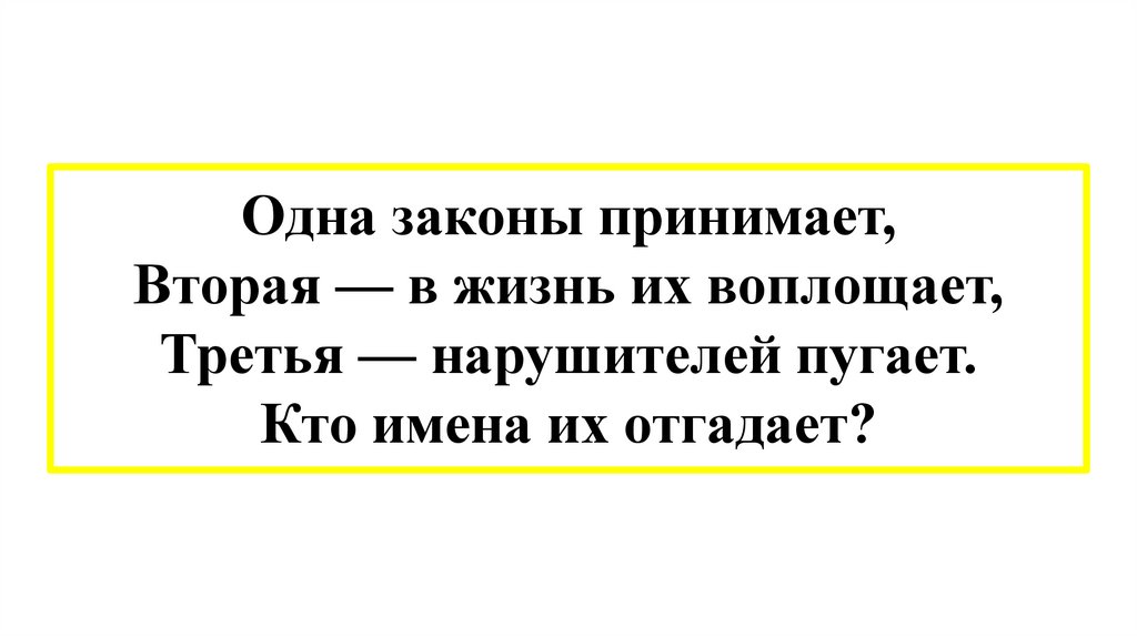 Одна законы принимает,Вторая — в жизнь их воплощает,