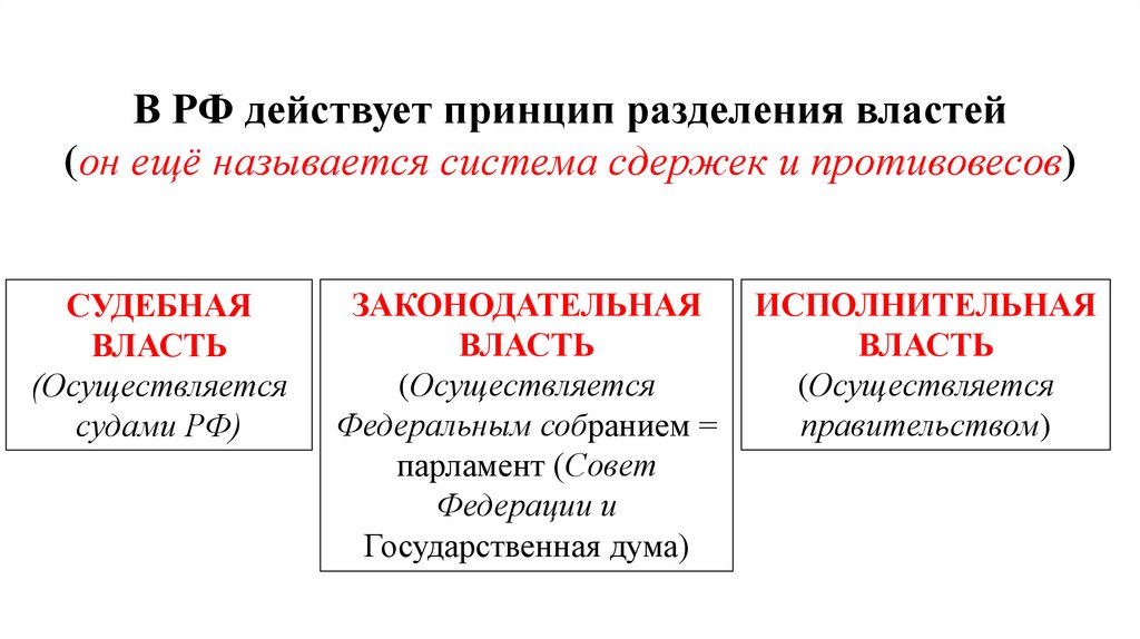 В РФ действует принцип разделения властей(он ещё называется система сдержек и противовесов)
