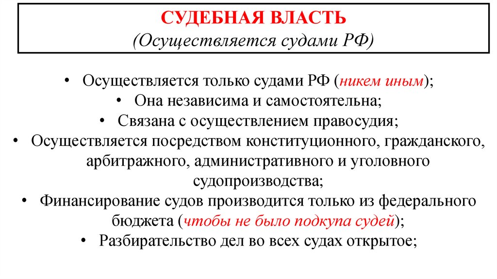 СУДЕБНАЯ ВЛАСТЬ(Осуществляется судами РФ)
