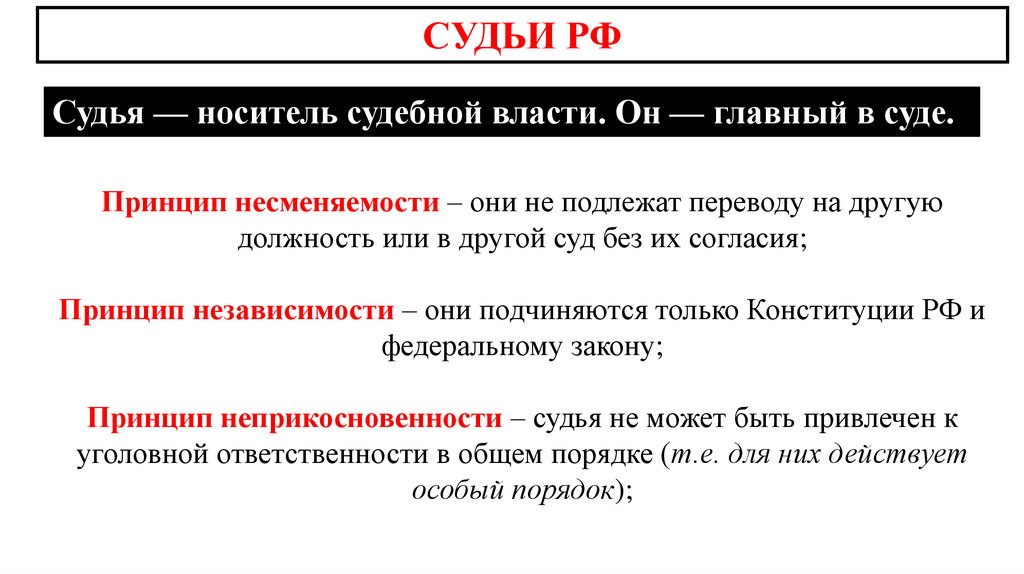 СУДЬИ РФСудья — носитель судебной власти. Он — главный в суде.