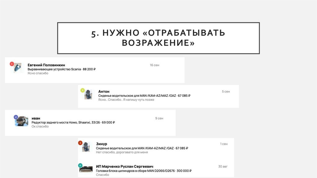 - торгующиеся покупатели («за 5000 ₽ отдашь», вместо «Здравствуйте», когда