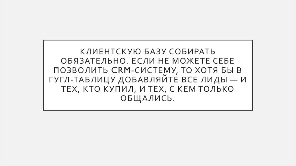 КЛИЕНТСКУЮ БАЗУ СОБИРАТЬОБЯЗАТЕЛЬНО. ЕСЛИ НЕ МОЖЕТЕ СЕБЕ