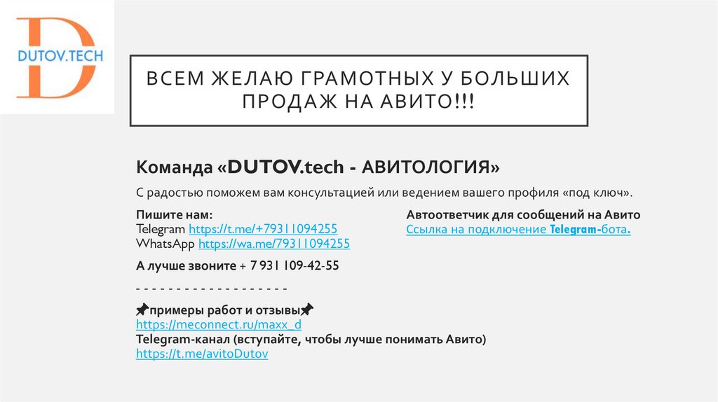 ВСЕМ ЖЕЛАЮ ГРАМОТНЫХ У БОЛЬШИХПРОДАЖ НА АВИТО!!!