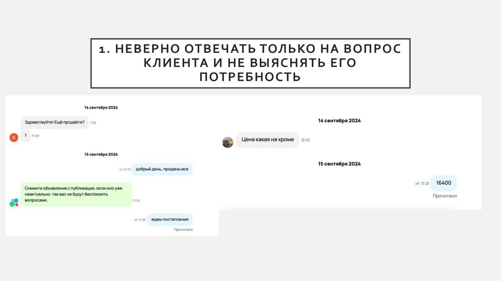 1. НЕВЕРНО ОТВЕЧАТЬ ТОЛЬКО НА ВОПРОСКЛИЕНТА И НЕ ВЫЯСНЯТЬ ЕГО