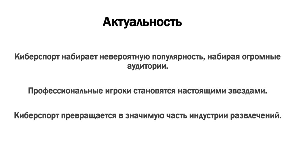 АктуальностьКиберспорт набирает невероятную популярность, набирая огромные
