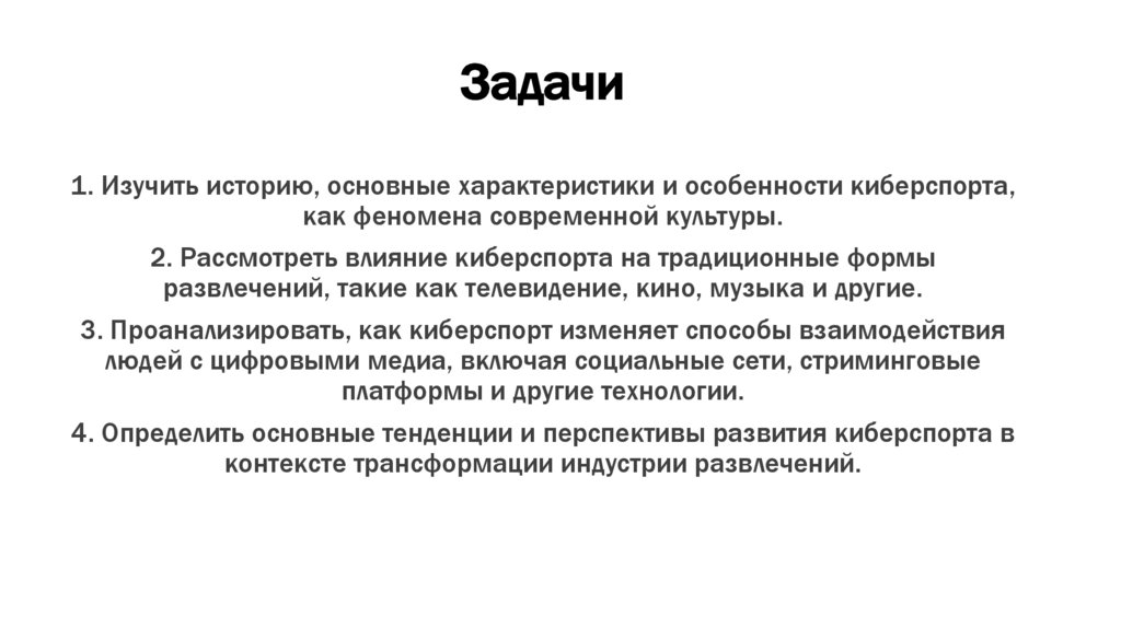 Задачи1. Изучить историю, основные характеристики и особенности киберспорта,