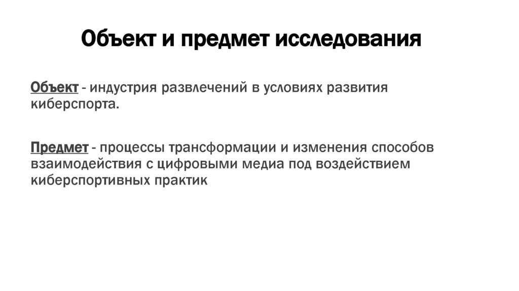 Объект и предмет исследованияОбъект - индустрия развлечений в условиях развития