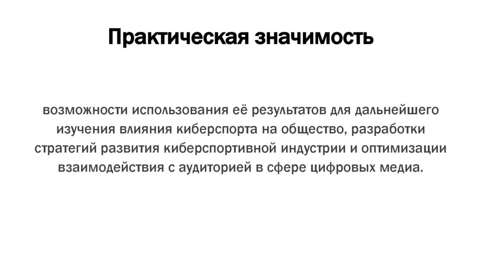 Практическая значимостьвозможности использования её результатов для дальнейшего