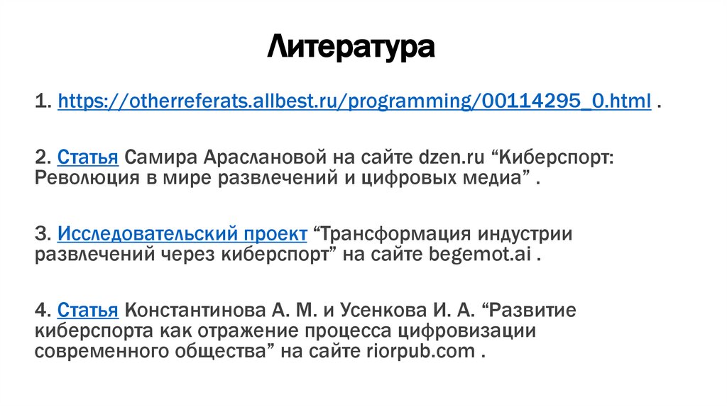 Литература1. https://otherreferats.allbest.ru/programming/00114295_0.html .