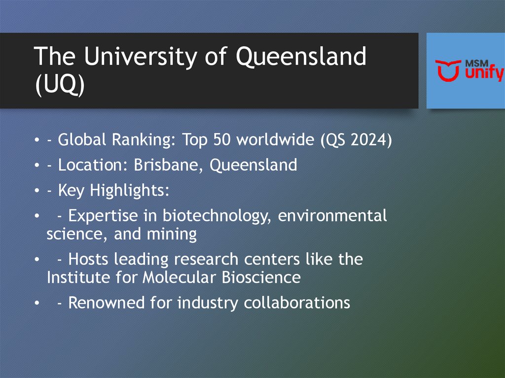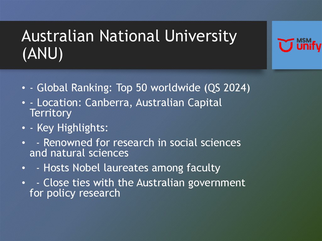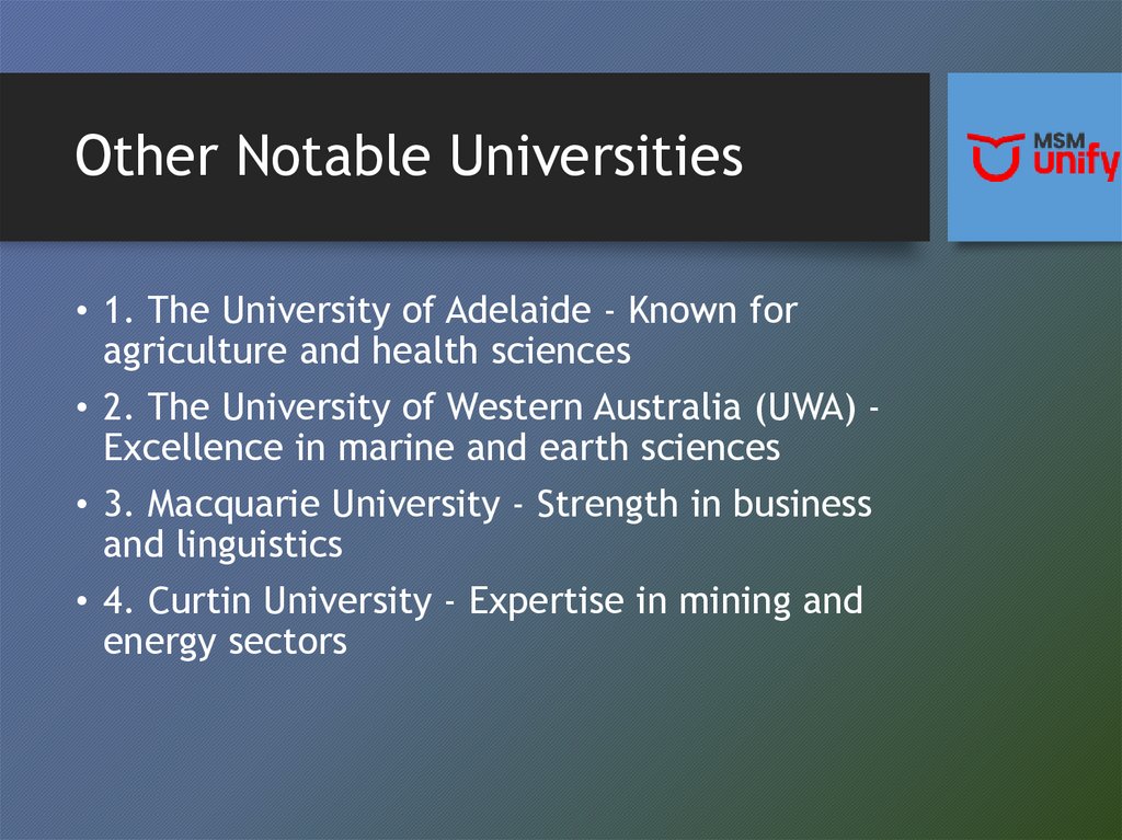 Other Notable Universities• 1. The University of Adelaide - Known for
