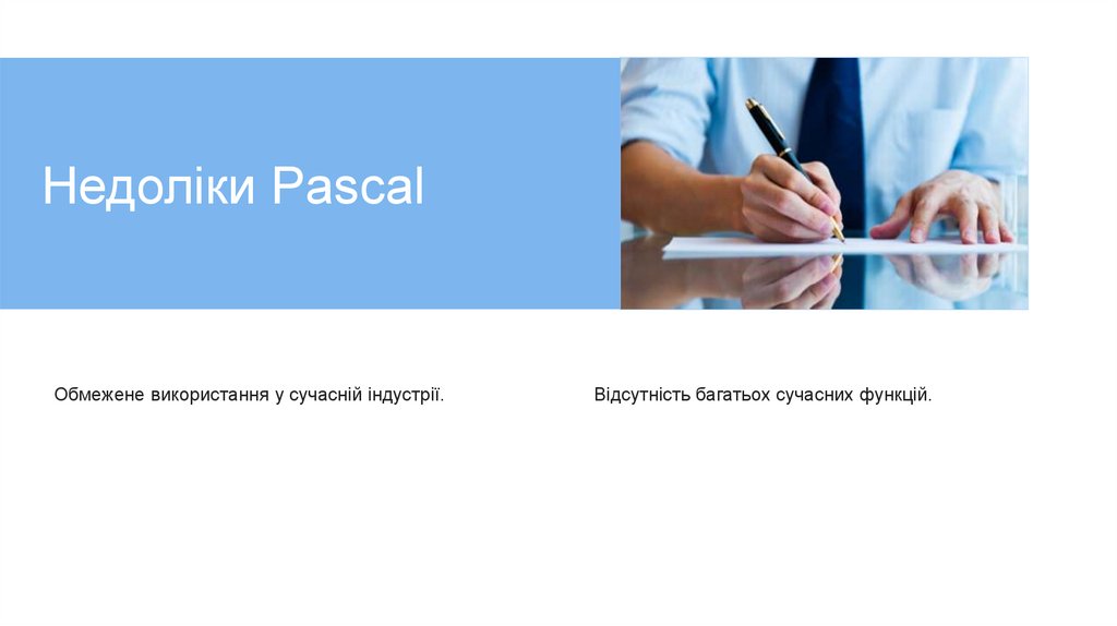 Недоліки PascalОбмежене використання у сучасній індустрії.