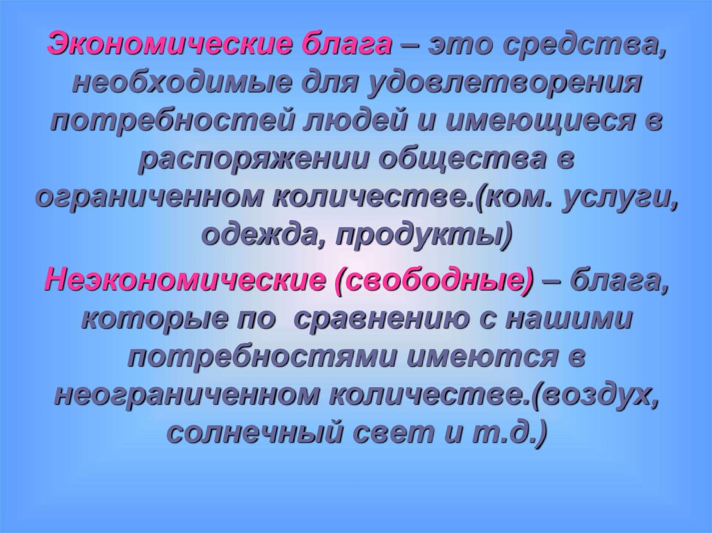 Экономические блага – это средства,необходимые для удовлетворения