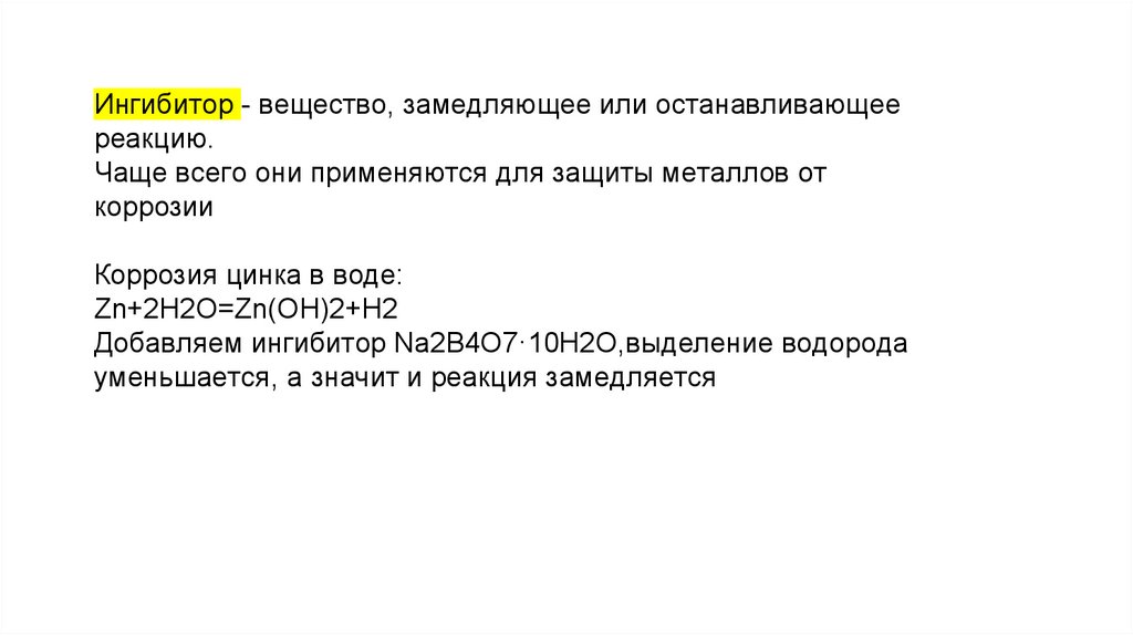 Ингибитор - вещество, замедляющее или останавливающеереакцию.