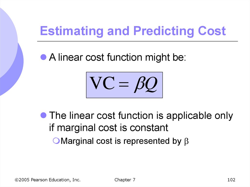 A linear cost function might be:VC Q