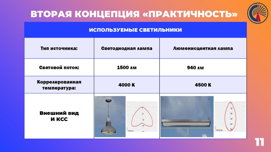 ВТОРАЯ КОНЦЕПЦИЯ «ПРАКТИЧНОСТЬ»ИСПОЛЬЗУЕМЫЕ СВЕТИЛЬНИКИ