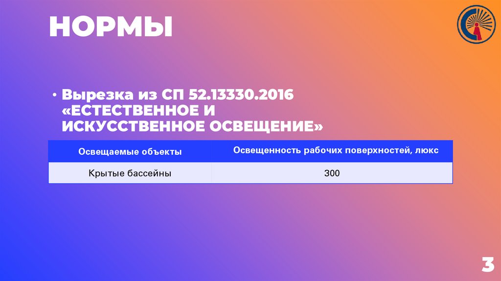 НОРМЫ• Вырезка из СП 52.13330.2016