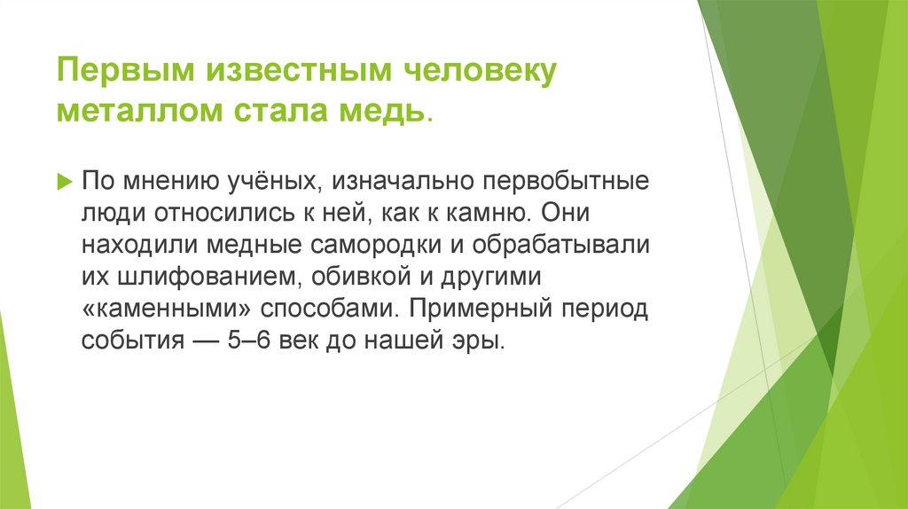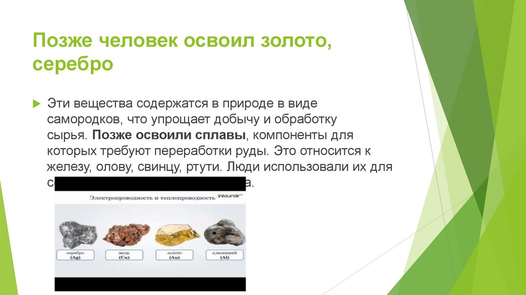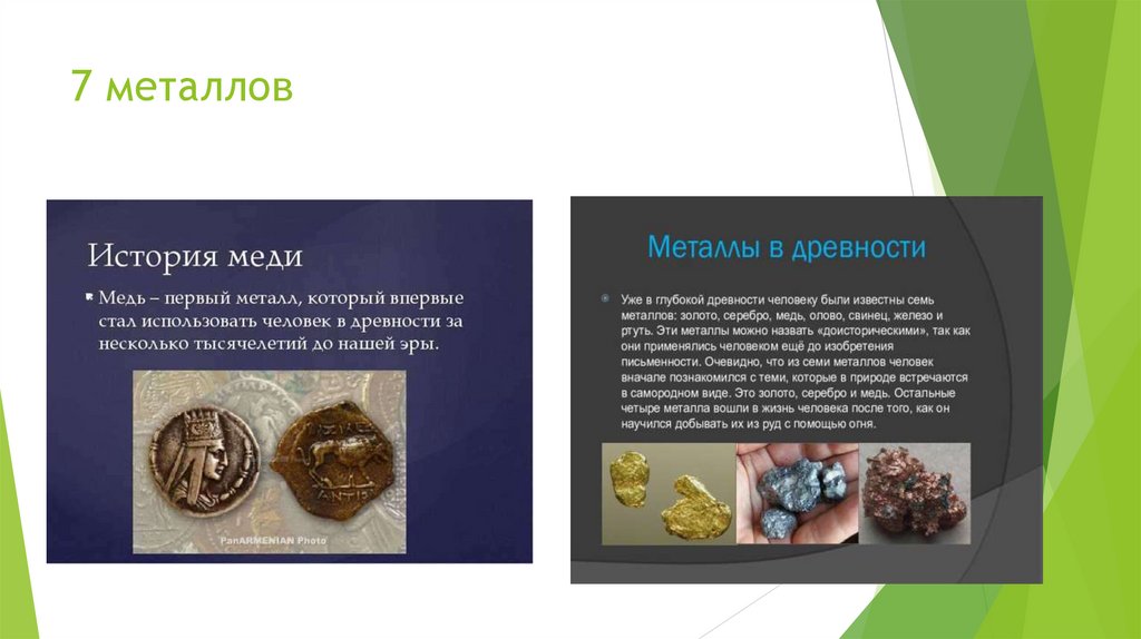 Знакомство человека с металламиВ глубокой древности были известны семь