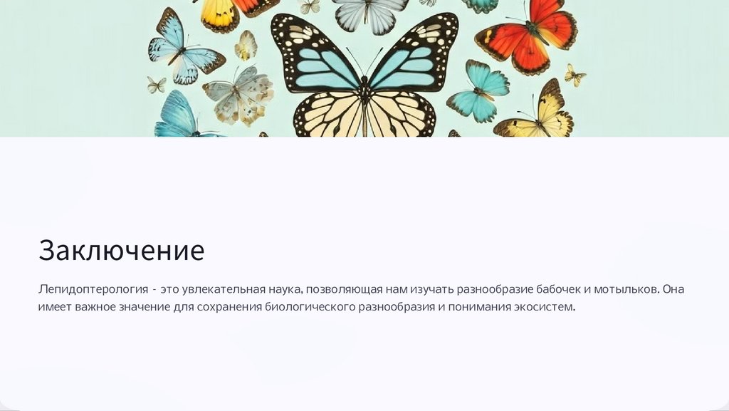 ЗаключениеЛепидоптерология – это увлекательная наука, позволяющая нам изучать разнообразие бабочек и мотыльков. Она
