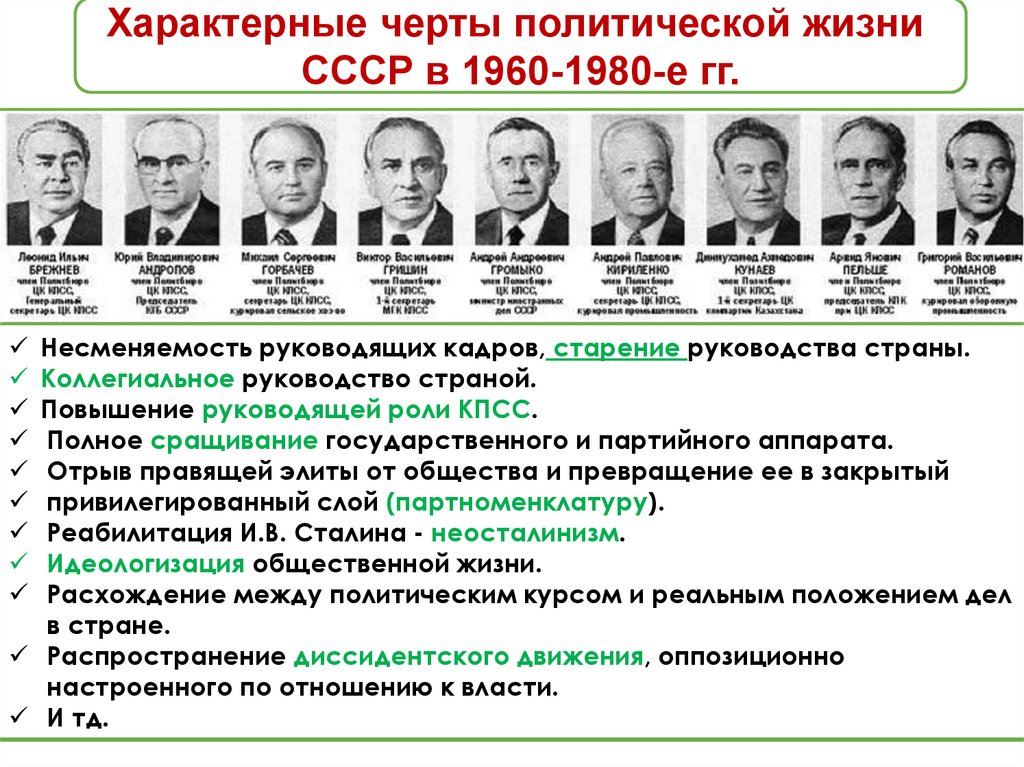 Характерные черты политической жизниСССР в 1960-1980-е гг.
