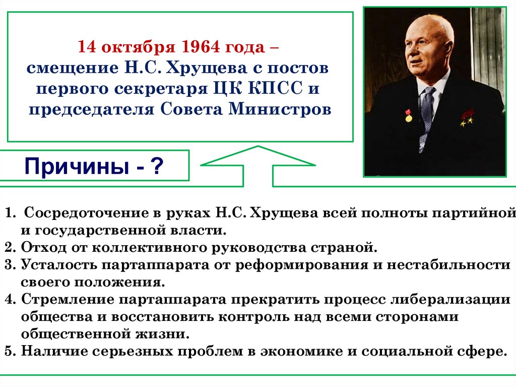 14 октября 1964 года –смещение Н.С. Хрущева с постов