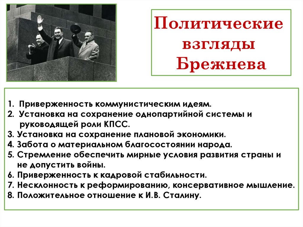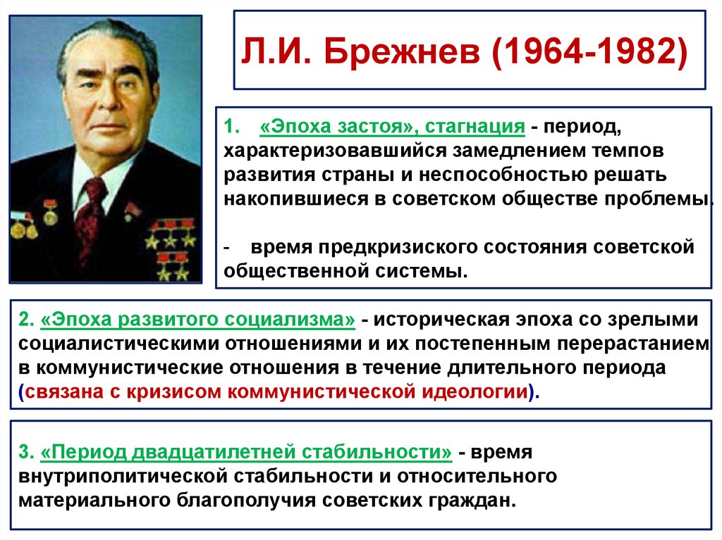 Л.И. Брежнев (1964-1982)1. «Эпоха застоя», стагнация - период,