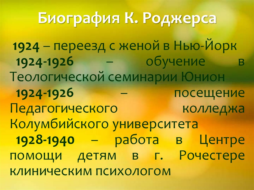 Биография К. Роджерса1924 – переезд с женой в Нью-Йорк