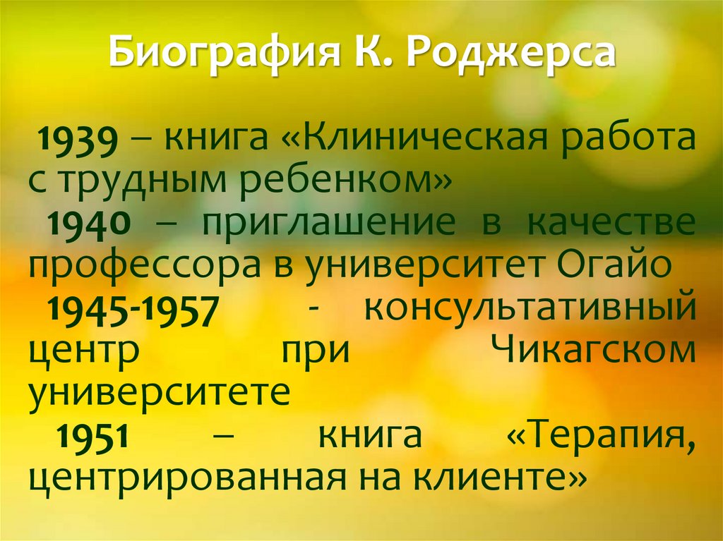 Биография К. Роджерса1939 – книга «Клиническая работа