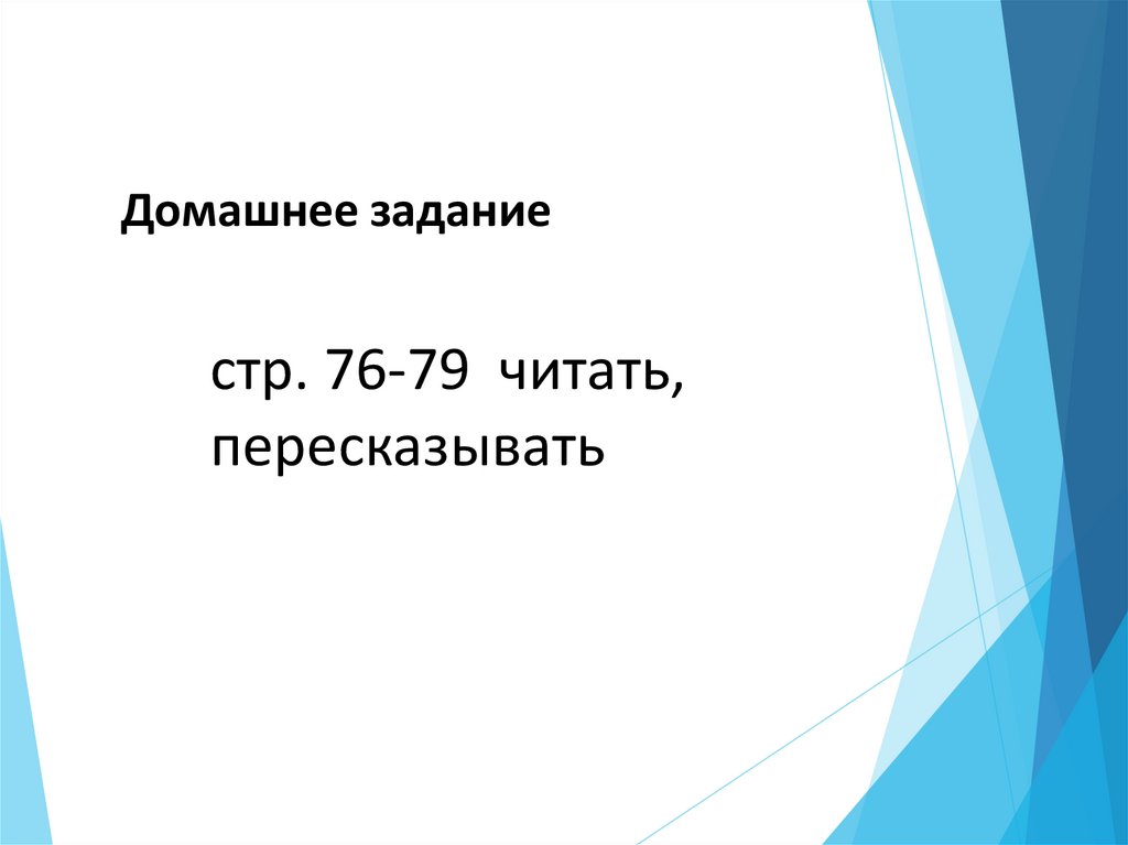 Домашнее заданиестр. 76-79 читать,