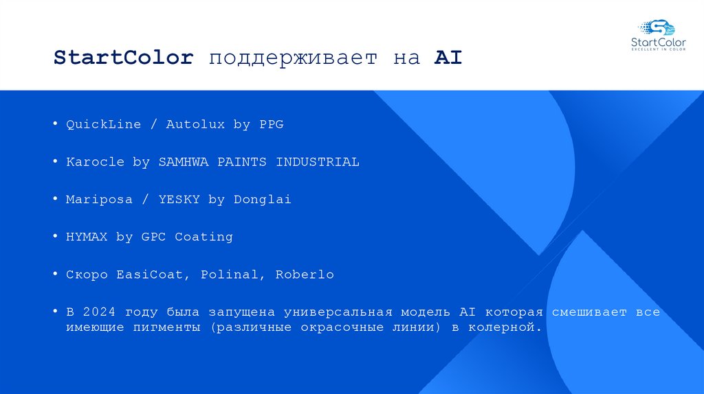 StartColor поддерживает на AI• QuickLine / Autolux by PPG