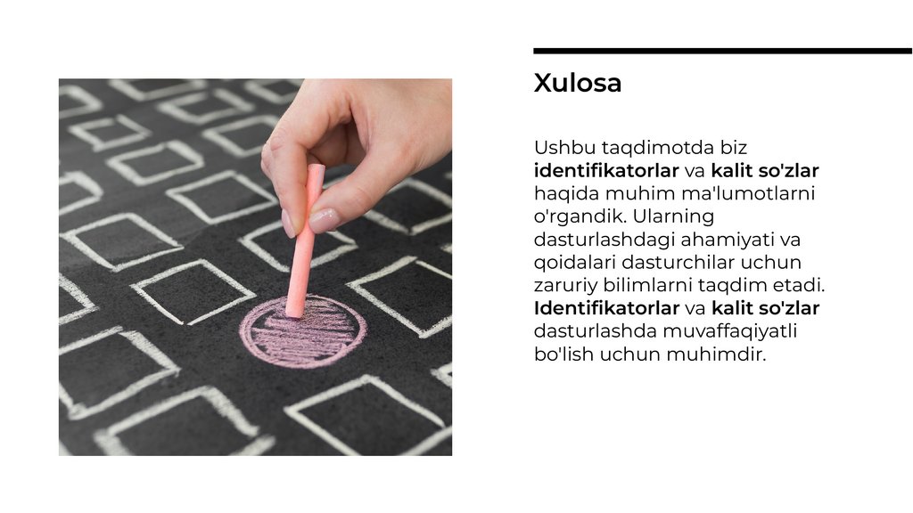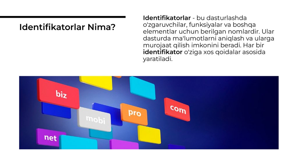 Identi katorlar Va Kalit So'zlarIdenti katorlar va kalit so'zlar dasturlash